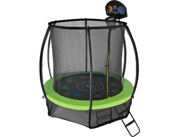 - Комплектация рамная конструкция, защитный мат двухсторонний, защитная сеть, нижняя защитная сеть, лестница, баскетбольное кольцо, мяч, насос.