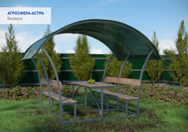 В комплект входит вся необходимая фурнитура. Вместительность беседки — до 8 человек.