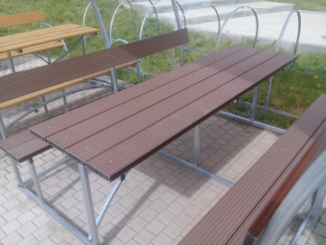 Столешница и лавки изготовлены террасной доски, толщина 30 мм.