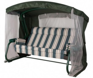 Модель комплектуется полиэфирным тентом с вшитой антимоскитной сеткой, защищающем от небольшого дождя и солнечных лучей (включая большую часть УФ-лучей).