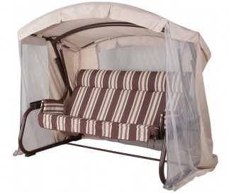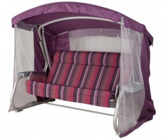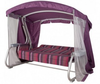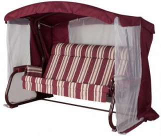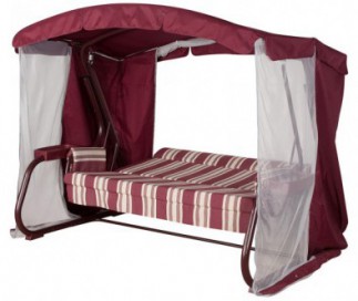Угол наклона спинки регулируется пошагово, при этом качели можно разложить полностью на 180 градусов, превратив ее в комфортную двуспальную кровать. Чехлы мягких элементов снабжены молнией и легко снимаются для стирки.