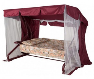 Угол наклона спинки регулируется пошагово, при этом качели можно разложить полностью на 180 градусов, превратив ее в комфортную двуспальную кровать. Чехлы мягких элементов снабжены молнией и легко снимаются для стирки.