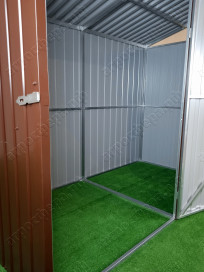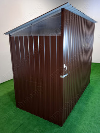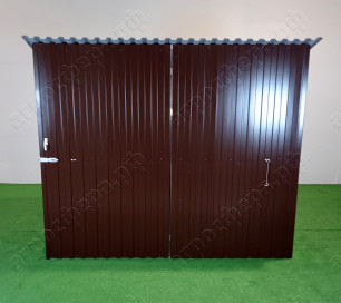 Сборка хозблока осуществляется при помощи болтов и саморезов. Все детали изготавливаются разборными, профлист нарезан на части. Компактно упакован и может перевозиться на багажнике легкового автомобиля.